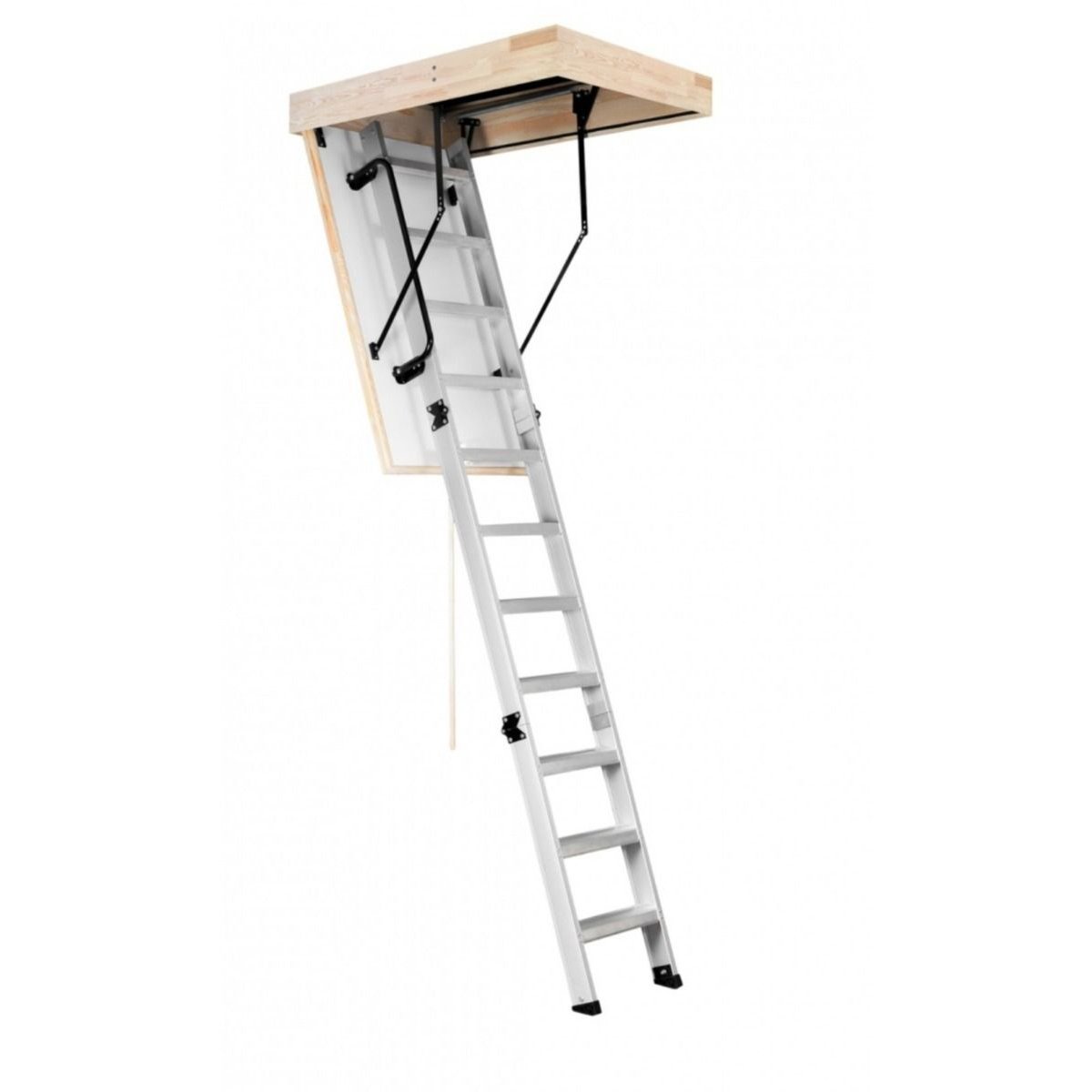 Podstrešne stopnice z izolirano loputo in enostavnim sistemom montaže s skritimi tečaji in zaključeno zunanjo obrobo. Stopnice so opremljene z varnostno ograjo in talnimi čepi.